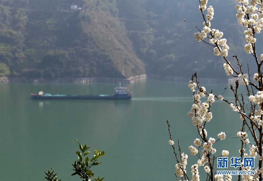 2月14日,長(zhǎng)江湖北省秭歸縣江段岸邊山花開(kāi)放。新華社發(fā)(王輝富 攝)