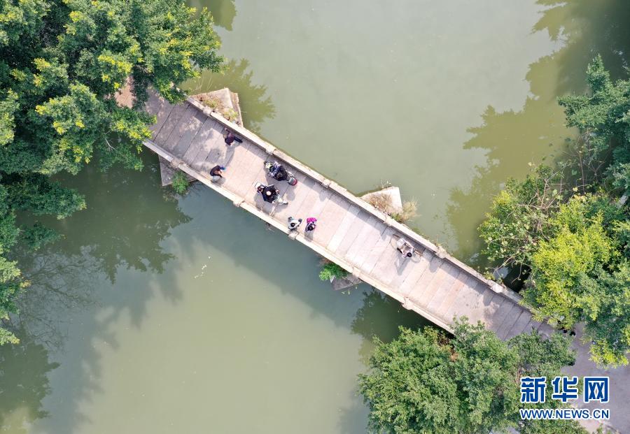 2月23日,市民行走在福州白馬橋上(無(wú)人機(jī)照片)。新華社記者 林善傳 攝