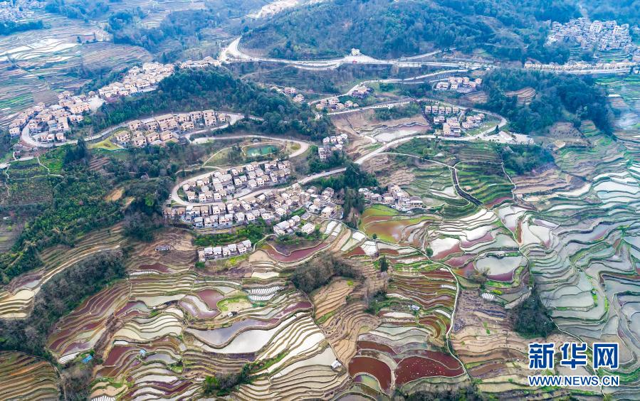 這是哈尼梯田景觀(guān)(2月24日攝,無(wú)人機(jī)照片)。