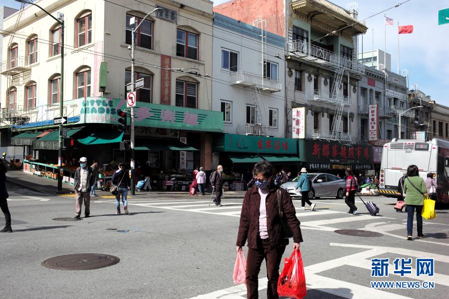 3月3日,人們走在美國(guó)加利福尼亞州舊金山唐人街街頭。新華社記者 吳曉凌 攝