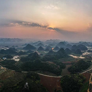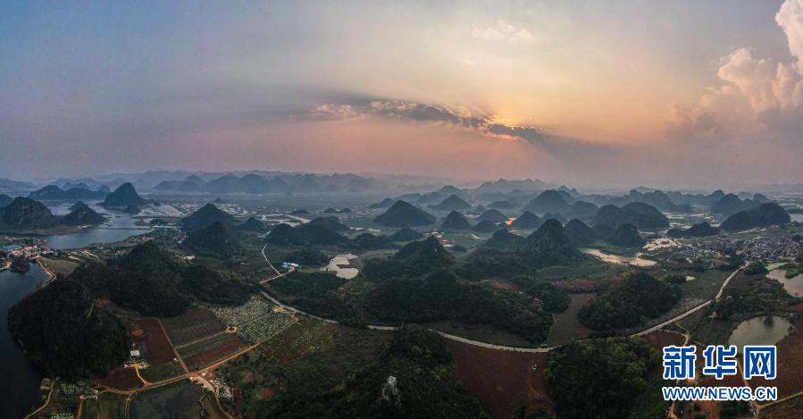 進(jìn)入3月,地處云南省文山壯族苗族自治州丘北縣的普者黑國(guó)家濕地公園內(nèi)層巒疊嶂,在光影交匯中盡顯秀美景色。
