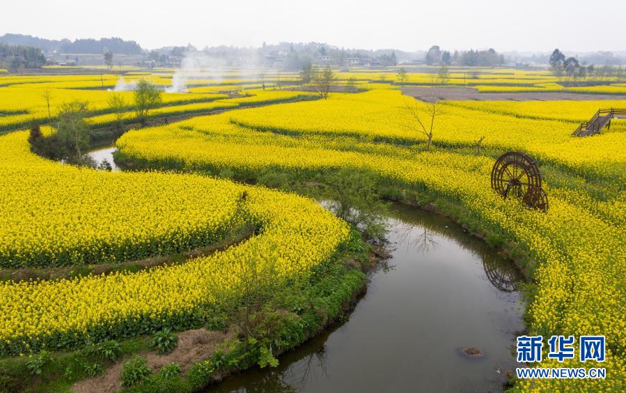 安州區(qū)樂興鎮(zhèn)蓮花村的油菜花海(3月14日攝,無人機照片)。新華社記者 江宏景 攝