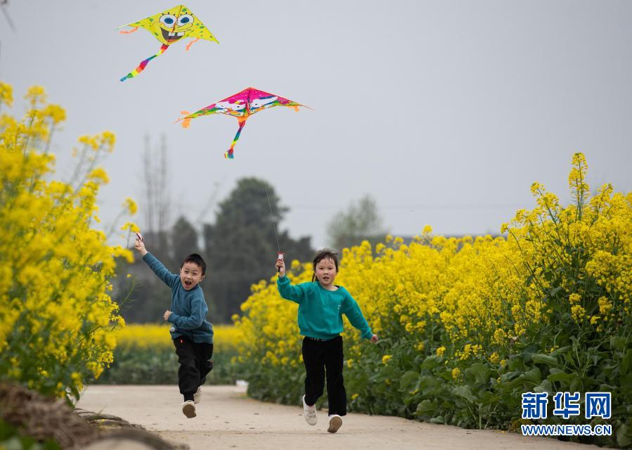 3月14日,小朋友在安州區(qū)秀水鎮(zhèn)龍泉村放風(fēng)箏。新華社記者 江宏景 攝