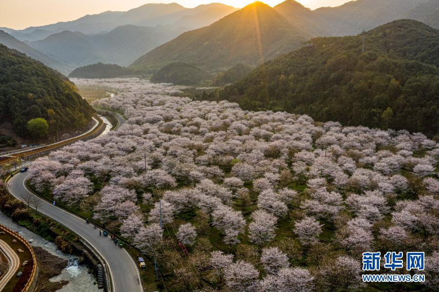 近日,位于浙江省紹興市上虞區(qū)章鎮(zhèn)鎮(zhèn)張村櫻花谷大片櫻花綻放,花香四溢,吸引游人前來(lái)踏青賞花。
