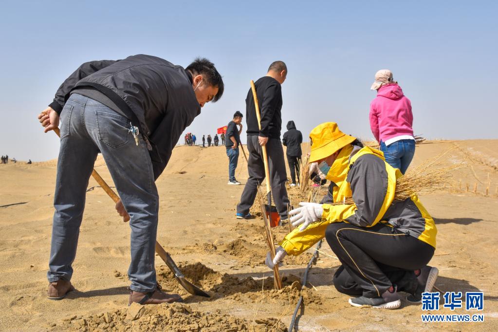 隨著天氣逐漸轉(zhuǎn)暖,在地處塔克拉瑪干沙漠南緣的新疆且末縣,人們紛紛行動起來植樹防沙,為沙漠增添綠色。