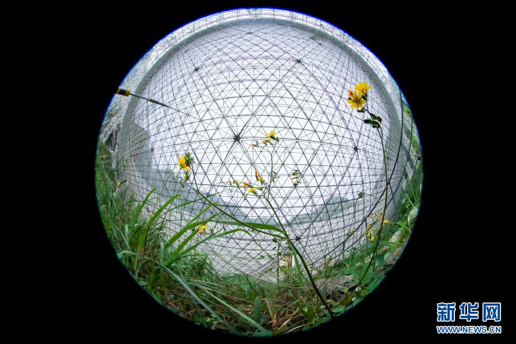 3月28日從“中國(guó)天眼”內(nèi)部拍攝的反射面板(維護(hù)保養(yǎng)期間魚眼鏡頭拍攝)。