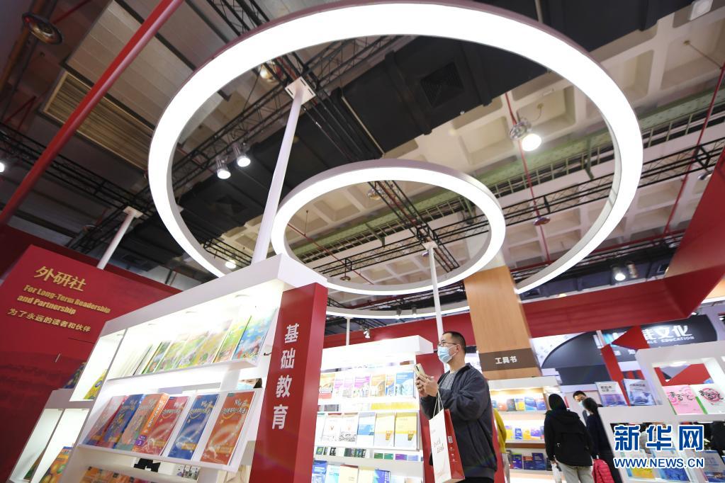 3月31日,參展人員在2021北京圖書(shū)訂貨會(huì)上參觀。
