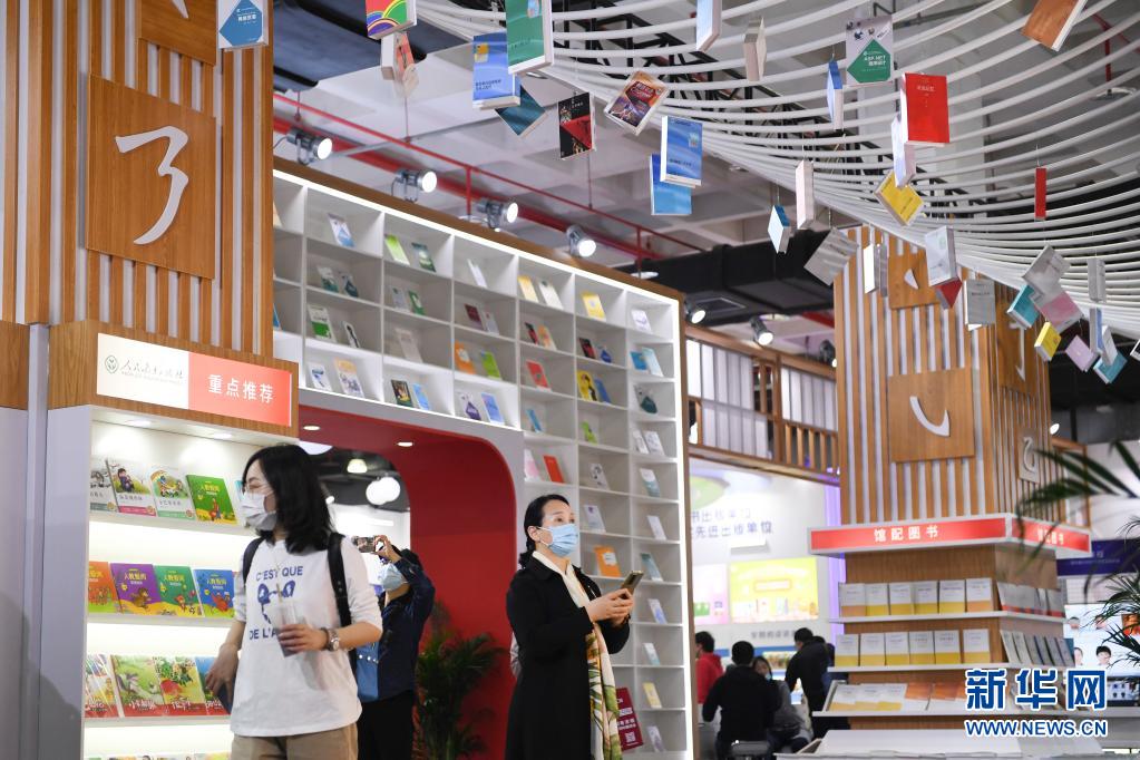 3月31日,參展人員在2021北京圖書訂貨會上參觀。