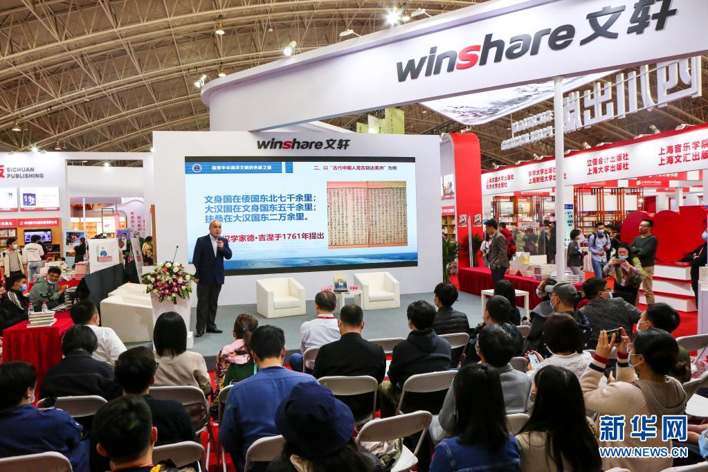 3月31日,參展人員在四川出版展區(qū)參加《海上傳奇》新書分享會。