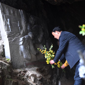 4月2日,曾祥有在金剛臺紅軍洞里獻花祭奠。