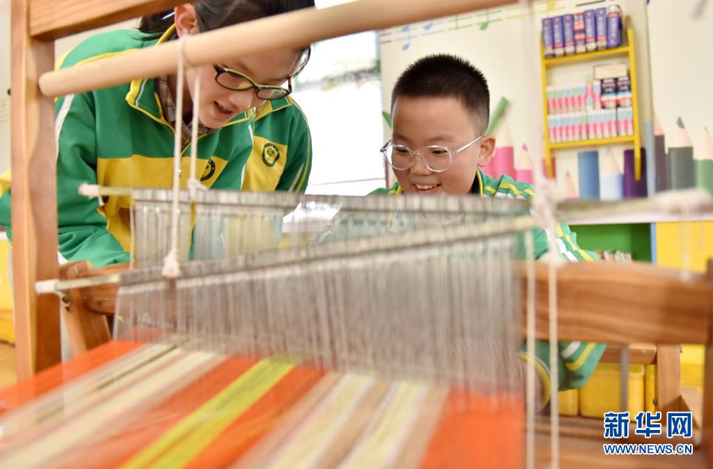 4月7日,威縣第四小學(xué)學(xué)生在體驗(yàn)老粗布紡織技藝。近年來,河北省邢臺(tái)市威縣積極開展“非遺傳承進(jìn)校園”活動(dòng),將當(dāng)?shù)靥厣沁z項(xiàng)目引入學(xué)校課堂,讓學(xué)生近距離感受民間傳統(tǒng)技藝的魅力,促進(jìn)非遺文化的保護(hù)和傳承。新華社記者 朱旭東 攝