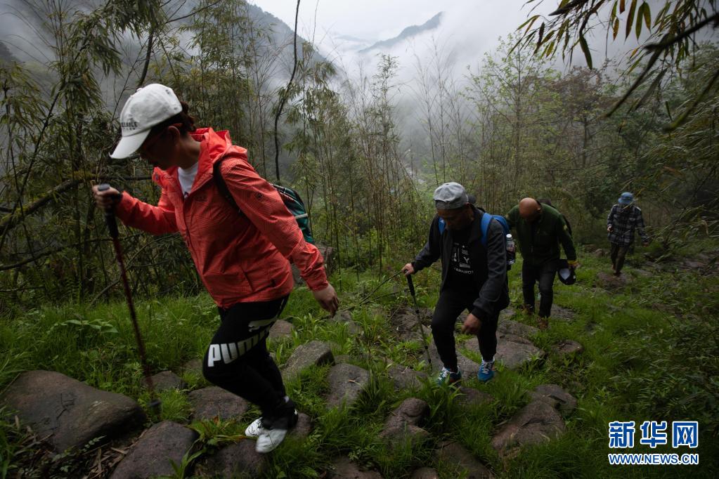 4月18日,徒步愛好者沿著大相嶺茶馬古道穿越。新華社記者 江宏景 攝