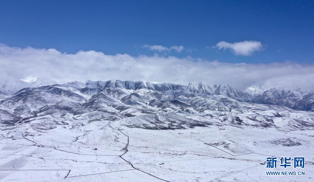 這是4月24日拍攝的祁連縣境內(nèi)雪景(無人機照片)。