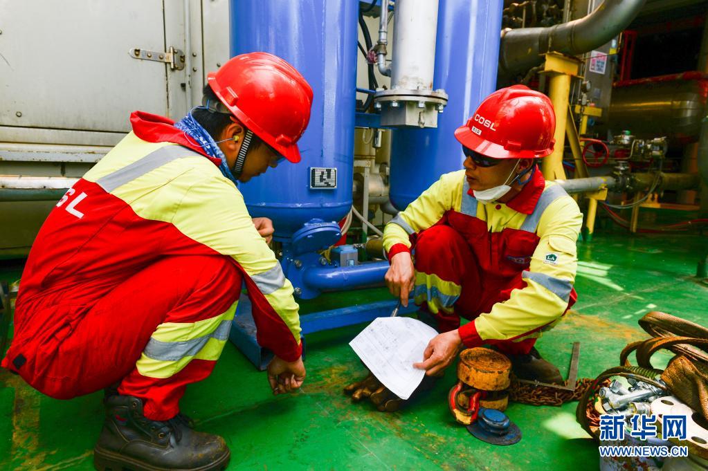4月25日,工人在中國(guó)海油樂(lè)東15-1氣田作業(yè)。