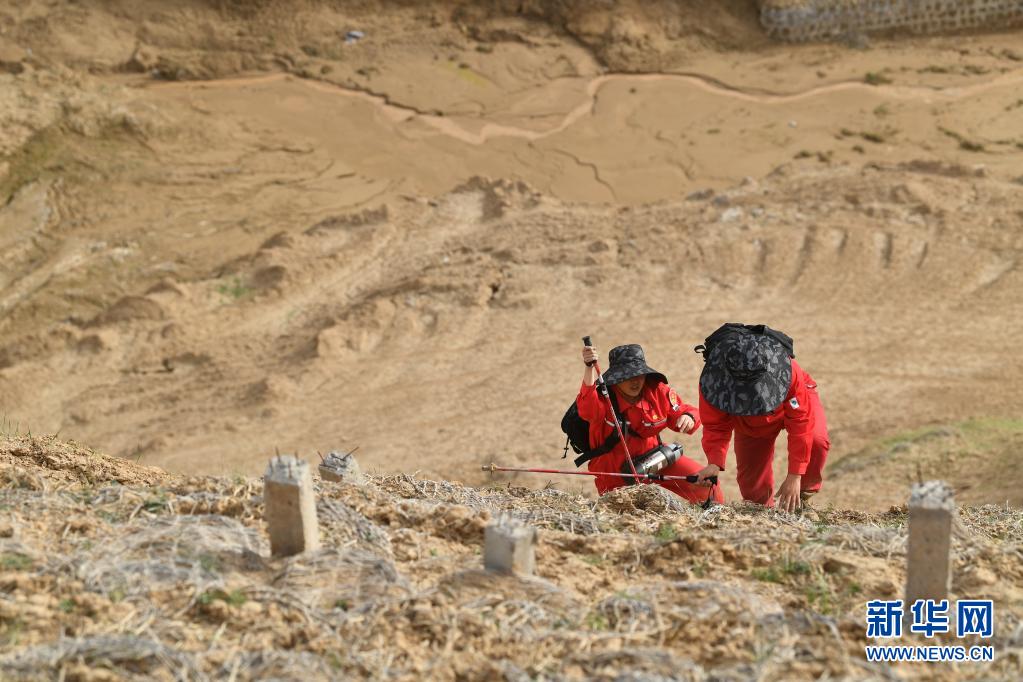 4月28日,巡線(xiàn)隊(duì)員侯勵(lì)峰、曹碩(左)在巡線(xiàn)途中。新華社記者 張博文 攝