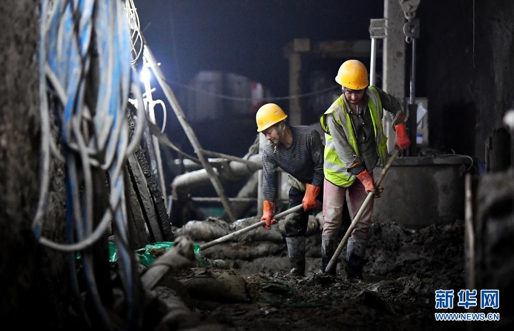 5月1日,在陜西西安地鐵八號線豐禾路站1號豎井施工現(xiàn)場,中鐵七局的工作人員在作業(yè)。