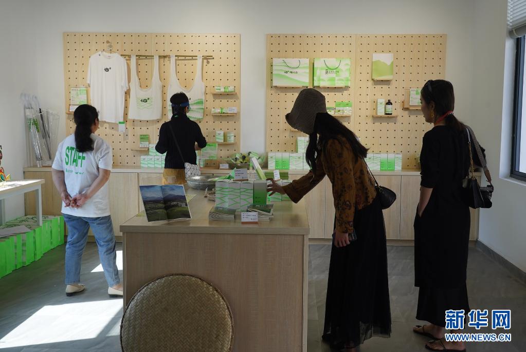 5月1日,參觀者在浮梁縣寒溪村挑選藝術(shù)展文創(chuàng)用品。