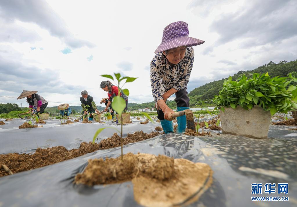 5月13日,村民在玉屏侗族自治縣田坪鎮(zhèn)慶寨村辣椒種植基地管護辣椒苗。