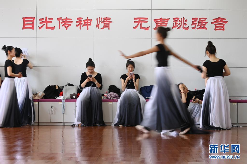 天津理工大學(xué)聾人工學(xué)院的舞蹈隊(duì)員們在學(xué)院的排練廳里休息(5月8日攝)。新華社記者 李然 攝