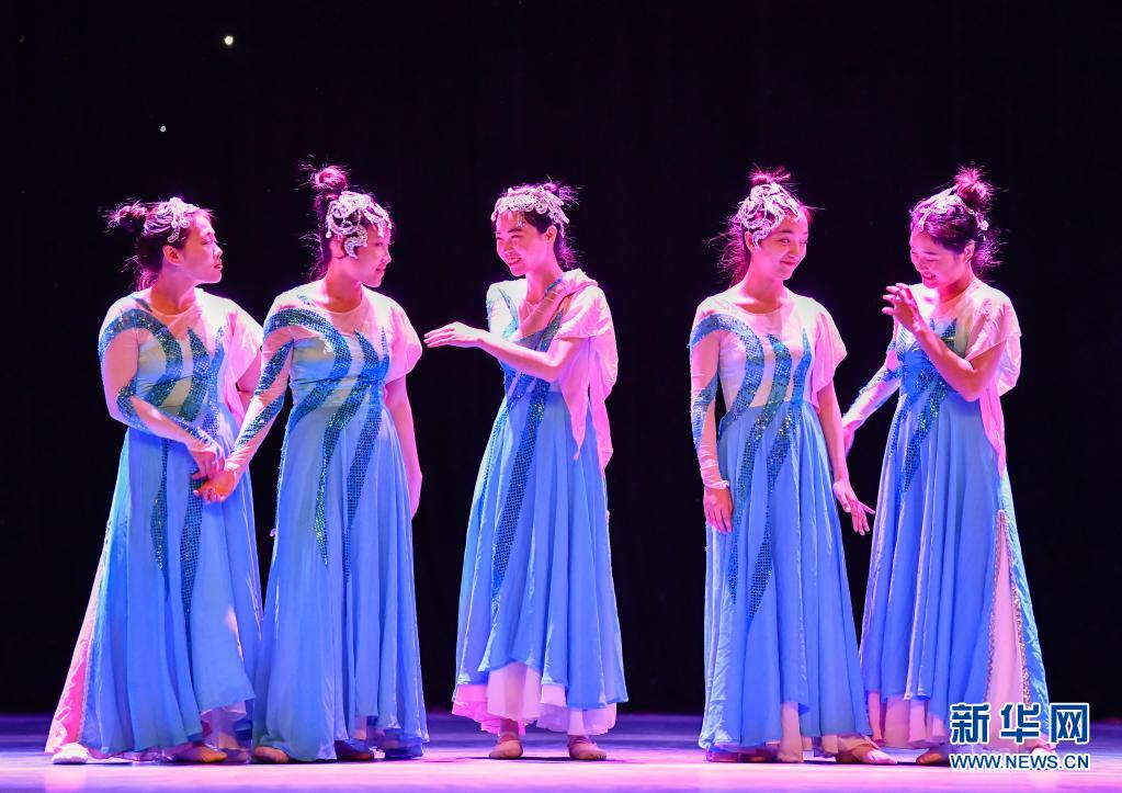 在天津理工大學(xué)的劇場里,天津理工大學(xué)聾人工學(xué)院的舞蹈隊員們在彩排間隙用手語交流(5月10日攝)。新華社發(fā)(孫凡越攝)