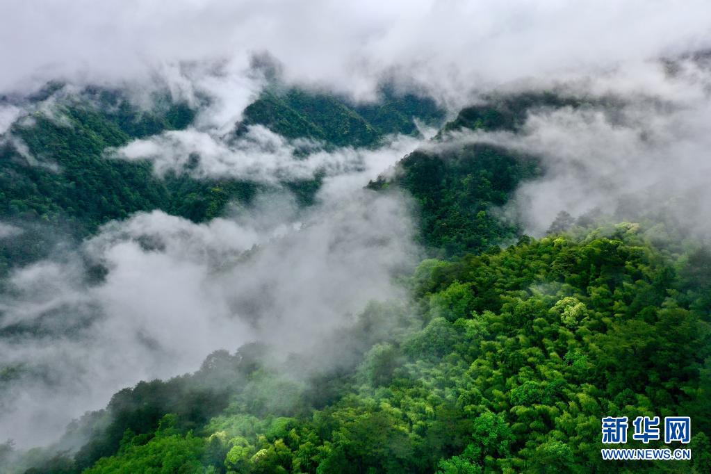 5月17日,武夷山國家公園桐木村附近群山云霧繚繞(無人機(jī)照片)。