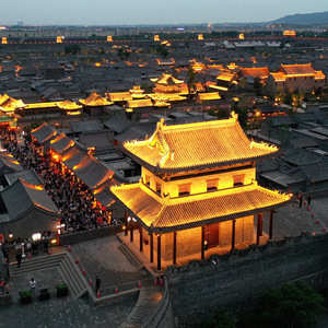 夜幕降臨,位于山西省太原市晉源區(qū)的太原古縣城流光溢彩,游人如織。太原古縣城始建于明代,占地面積約0.8平方公里,因其造型像一只飛鳥,也被譽(yù)為“鳳凰城”。歷經(jīng)8年修繕后,太原古縣城于2021年5月重新對外開放。