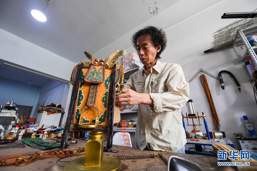 騎馬、射箭、摔跤并稱為蒙古族的“男兒三藝”。在內蒙古錫林郭勒盟錫林浩特市,蒙古族手工藝人錫林虎,從2005年起致力于傳承民族特色文化,將“男兒三藝”中的傳統(tǒng)元素——馬鞍、弓箭、摔跤服融入工藝品制作中,打造出一件件獨具匠心的民族特色藝術品,受到牧民和游客的喜愛。