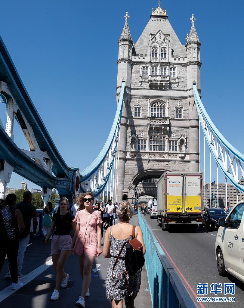 6月1日,人們?cè)谟?guó)倫敦塔橋上行走。