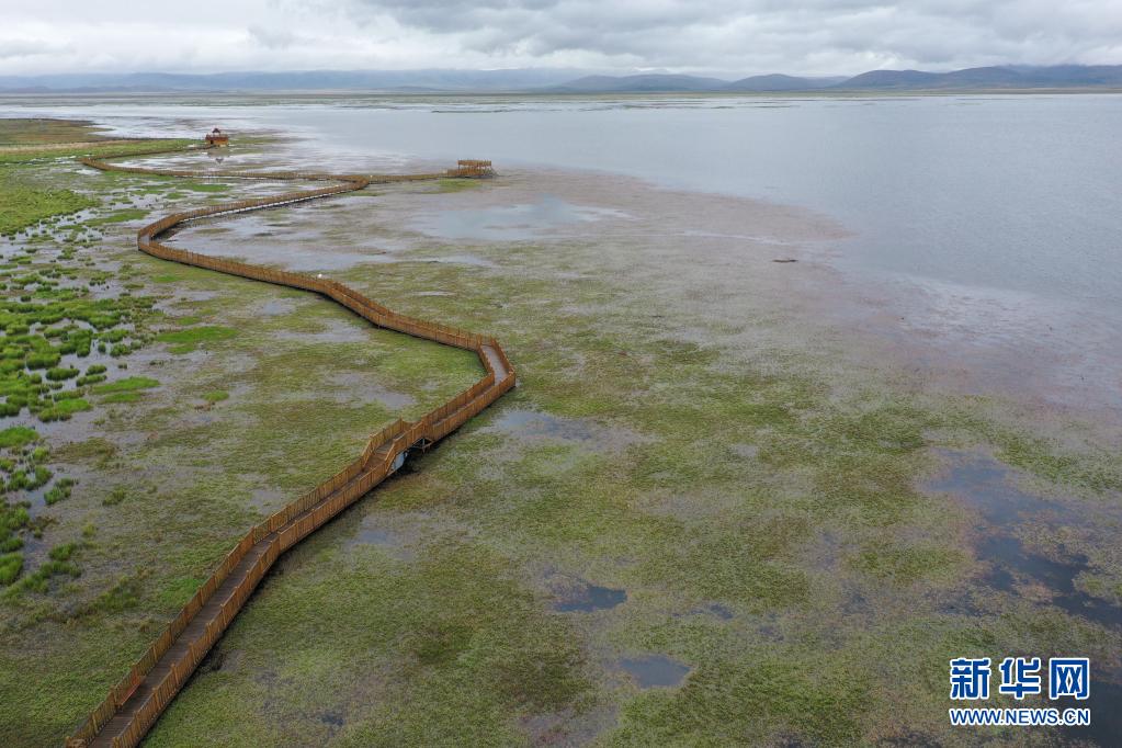 這是6月2日在甘肅省甘南藏族自治州碌曲縣拍攝的尕海湖(無人機(jī)照片)。