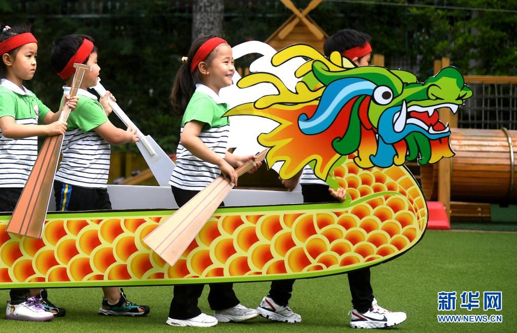 6月10日,石家莊市橋西區(qū)第三幼兒園的小朋友們在進行劃“龍舟”比賽。