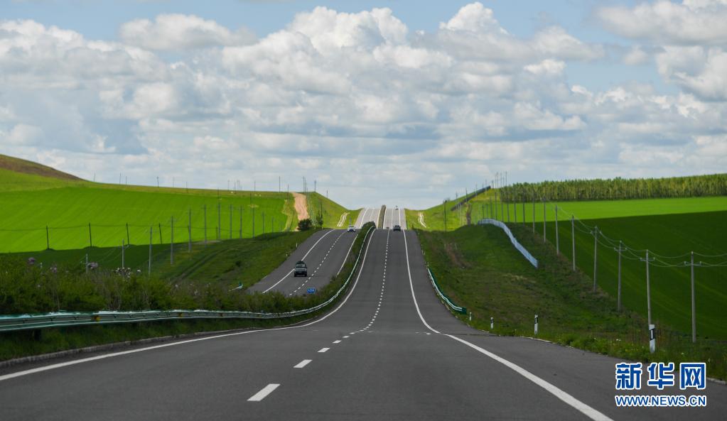 內(nèi)蒙古呼倫貝爾332國道旁景色迷人(6月10日攝)。