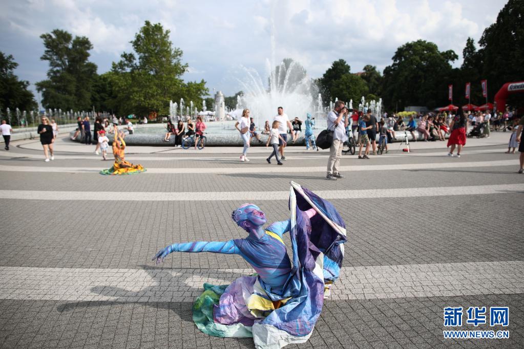 6月26日,舞蹈演員在波蘭首都華沙街頭進(jìn)行夏日文化娛樂活動的表演。