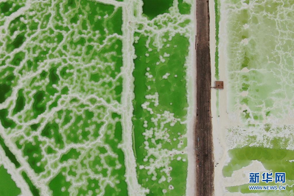 這是7月8日拍攝的察爾汗鹽湖一角(無人機照片)。
