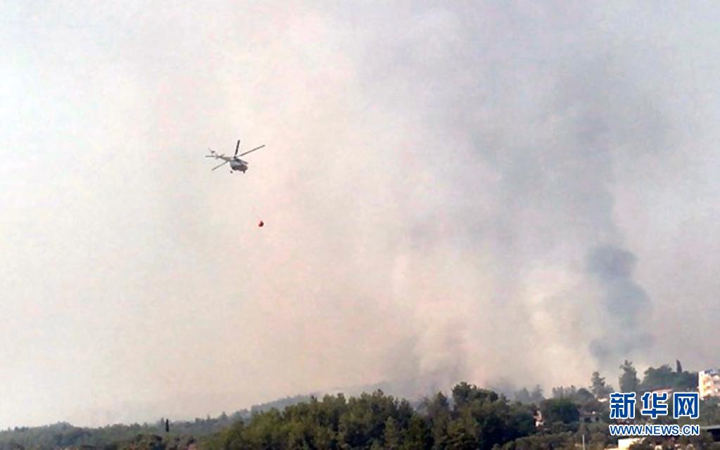 7月31日,直升機(jī)在土耳其馬納夫加特附近參與滅火。