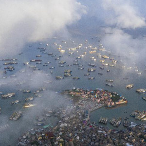 8月1日,浙江省舟山市大批漁船從沈家門漁港開赴東海海域進(jìn)行捕撈作業(yè)(無人機(jī)照片)。