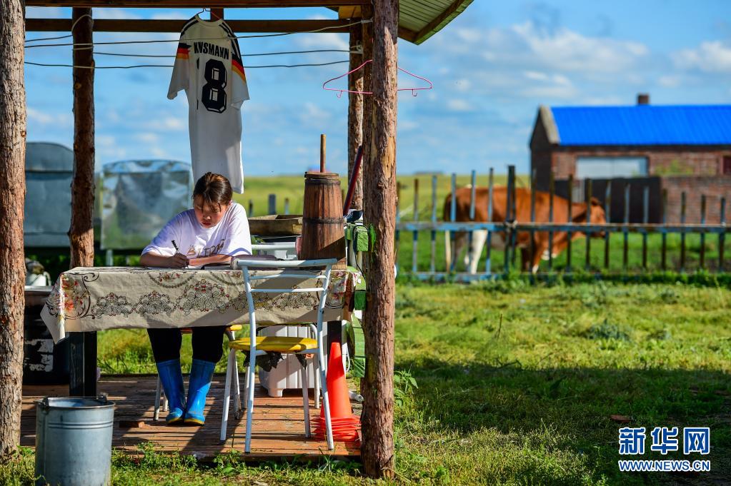 盛夏時(shí)節(jié)的呼倫貝爾草原美不勝收,吉布斯樂(lè)瑪一邊幫助父母放牛,一邊學(xué)習(xí),空閑時(shí)間與足球?yàn)榘椋倨谏罘滞獬鋵?shí)。