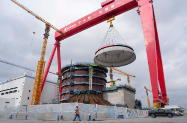 2月10日,国家电投广东廉江核电项目1号机组核岛钢制安全壳顶封头吊装就位,标志着1号机组核岛反应堆厂房封顶,厂房主体结构正式成型。