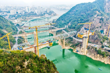 2月10日,由中铁十一局承建的西渝高铁嘉陵江特大桥首对斜拉索成功安装。