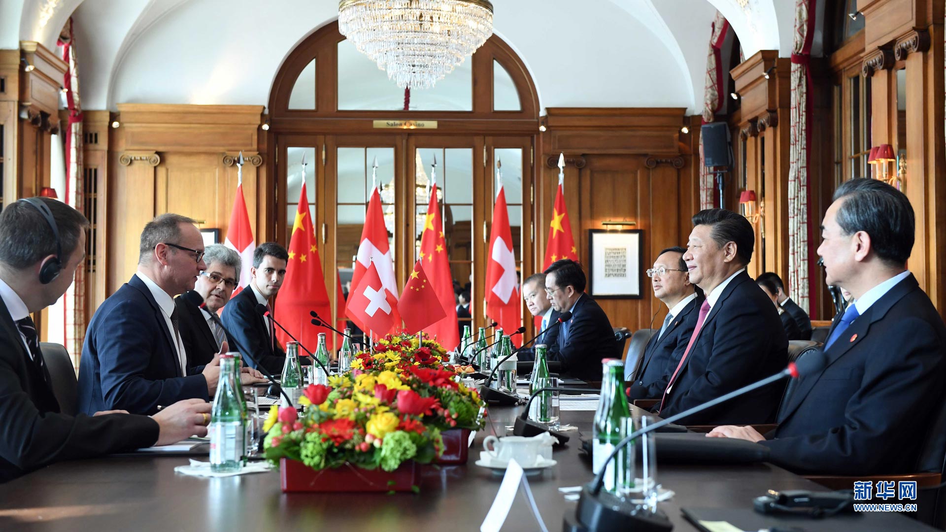 1月16日,國家主席習近平在伯爾尼會見瑞士聯(lián)邦國民院議長施塔爾和聯(lián)邦院議長比紹夫貝爾格。 新華社記者 謝環(huán)馳 攝2017-01-17