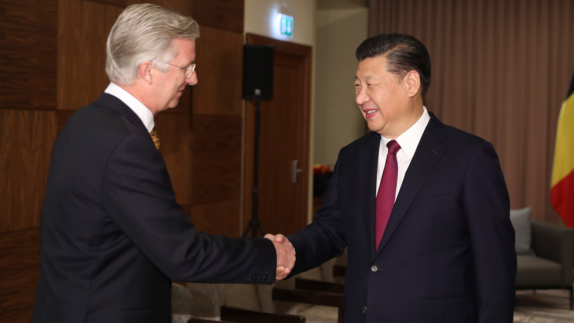 1月17日,國家主席習近平在瑞士達沃斯會見比利時國王菲利普。新華社記者 饒愛民 攝2017-01-18
