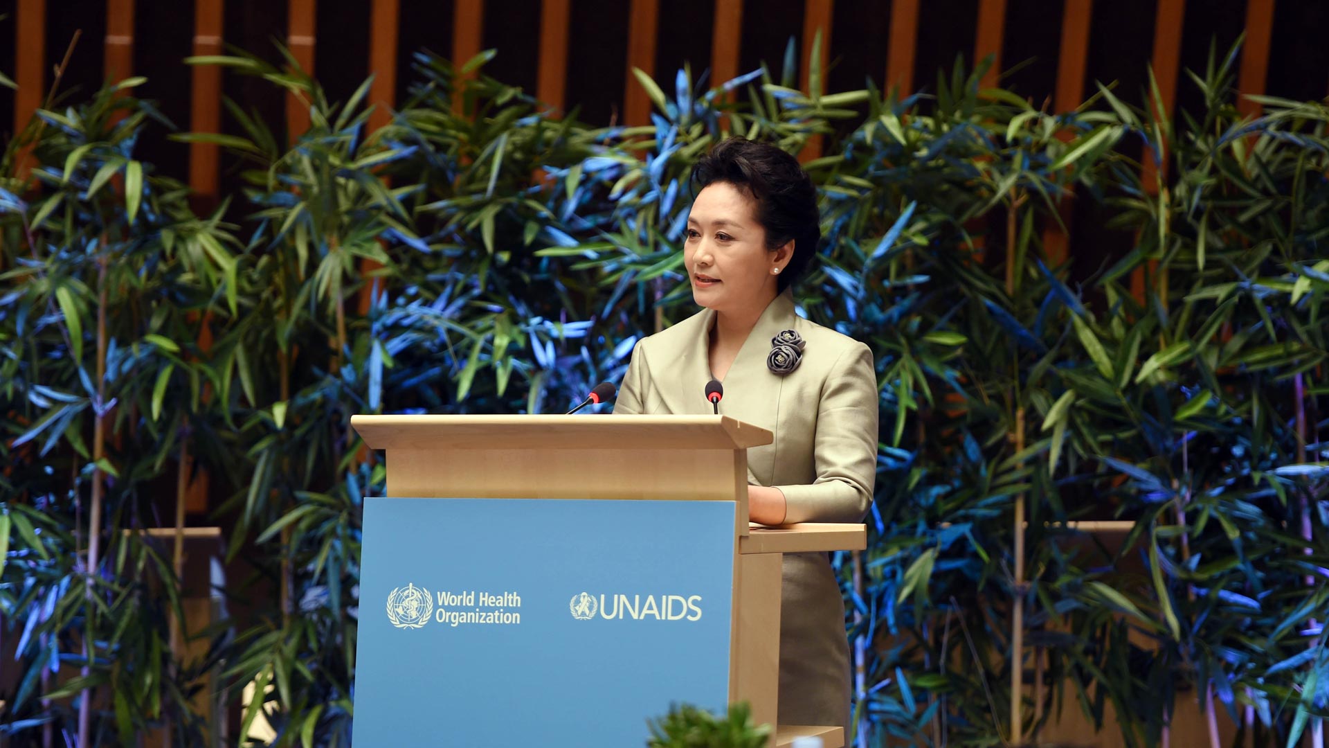 1月18日,國家主席習近平夫人、世界衛(wèi)生組織結(jié)核病和艾滋病防治親善大使彭麗媛應(yīng)世界衛(wèi)生組織總干事陳馮富珍和聯(lián)合國艾滋病規(guī)劃署執(zhí)行主任西迪貝邀請,在瑞士日內(nèi)瓦出席為她舉行的親善大使任期續(xù)延暨頒獎儀式。這是彭麗媛在儀式上致辭。新華社記者謝環(huán)馳攝2017-01-19