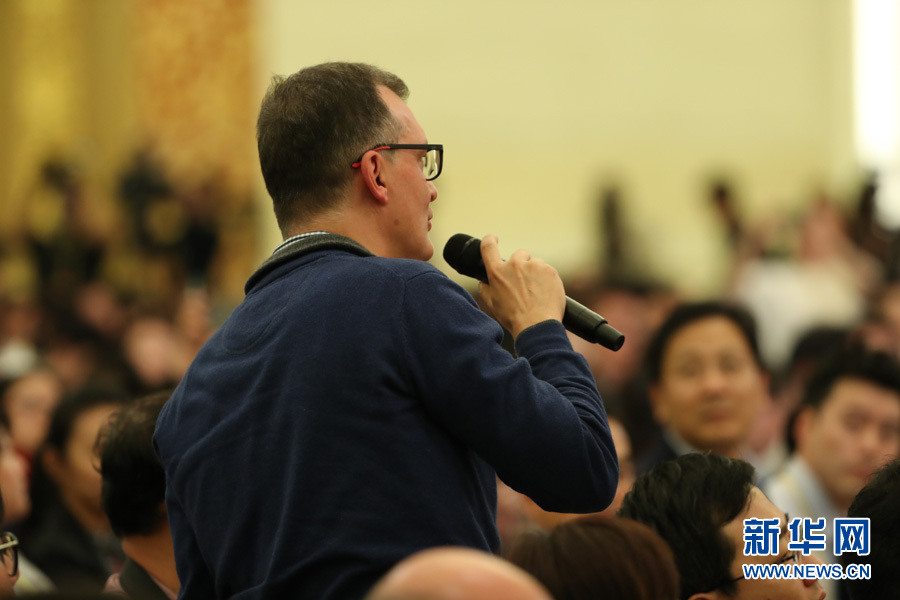 2017年10月17日下午,中國(guó)共產(chǎn)黨第十九次全國(guó)代表大會(huì)新聞發(fā)言人在人民大會(huì)堂三樓金色大廳舉行新聞發(fā)布會(huì),并回答中外記者提問(wèn)。圖為埃菲社記者提問(wèn)。新華網(wǎng) 翟子赫 攝