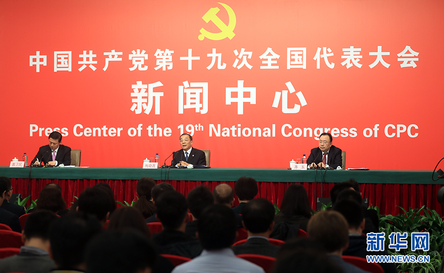 ??? 10月19日,十九大新聞中心舉行記者會,邀請中紀委、中組部負責人介紹黨的建設和全面從嚴治黨相關情況。圖為記者會現(xiàn)場。新華網(wǎng) 郝廣鵬攝