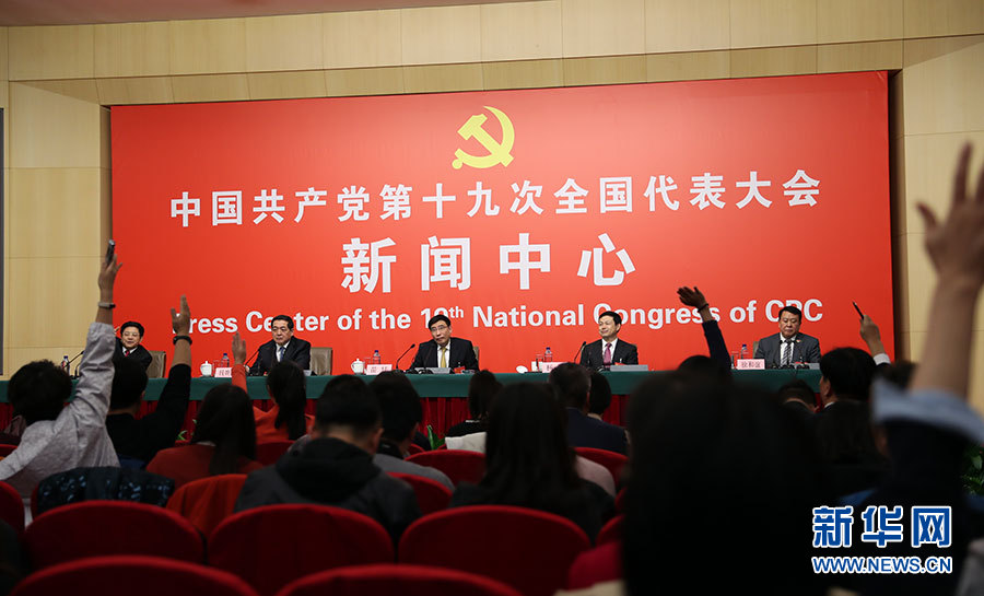 ??? 10月19日,十九大新聞中心舉辦集體采訪,邀請工信和通訊領(lǐng)域代表談走新型工業(yè)化道路。圖為集體采訪活動現(xiàn)場。新華網(wǎng) 郝廣鵬攝