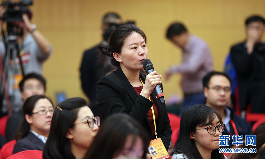 10月21日,十九大新聞中心舉辦集體采訪活動,主題為“農(nóng)業(yè)科技創(chuàng)新”。圖為農(nóng)民日報記者提問。新華網(wǎng) 郝廣鵬攝