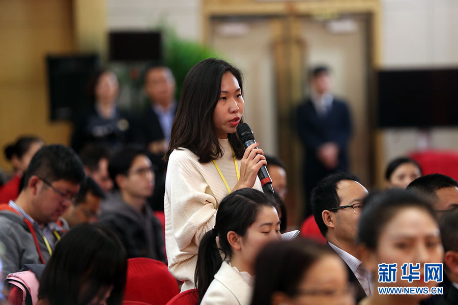 10月22日,十九大新聞中心在梅地亞中心二層新聞發(fā)布廳舉辦集體采訪(fǎng)活動(dòng),邀請(qǐng)教育領(lǐng)域代表談“教育綜合改革”。圖為中國(guó)新聞社、中國(guó)新聞網(wǎng)記者提問(wèn)。新華網(wǎng) 郝廣鵬攝