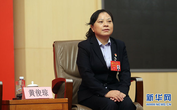 10月22日,十九大新聞中心在梅地亞中心二層新聞發(fā)布廳舉辦集體采訪活動,邀請教育領(lǐng)域代表談“教育綜合改革”。圖為貴州省黔東南州鎮(zhèn)遠(yuǎn)縣江古鎮(zhèn)中心小學(xué)教師黃俊瓊。新華網(wǎng) 郝廣鵬攝