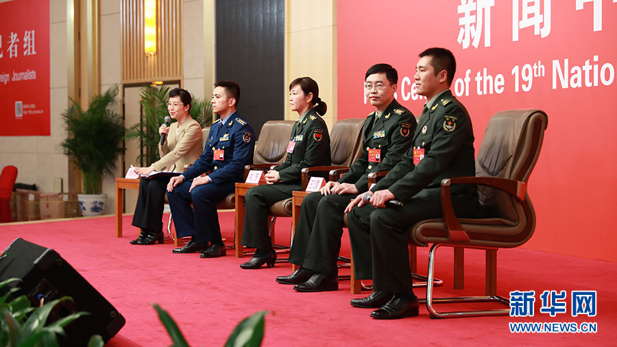 10月22日,十九大新聞中心在梅地亞中心二層新聞發(fā)布廳舉辦集體采訪活動(dòng),主題為“中國(guó)特色強(qiáng)軍之路邁出堅(jiān)定步伐”。圖為集體采訪活動(dòng)現(xiàn)場(chǎng)。新華網(wǎng) 郝廣鵬攝