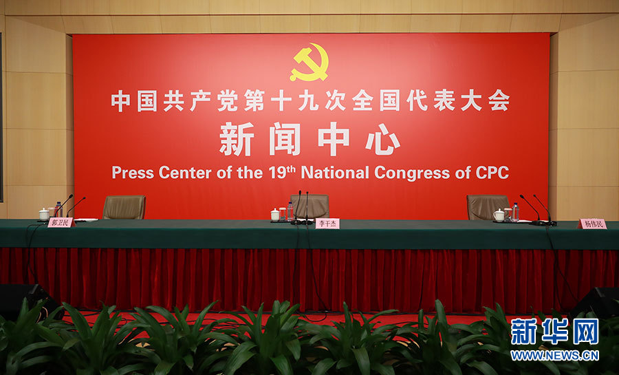 10月23日,十九大新聞中心舉辦記者招待會,邀請中央財經(jīng)領(lǐng)導(dǎo)小組辦公室副主任楊偉民,環(huán)境保護(hù)部黨組書記、部長李干杰介紹踐行綠色發(fā)展理念,建設(shè)美麗中國有關(guān)情況,并回答記者提問。圖為記者招待會現(xiàn)場。新華網(wǎng) 郝廣鵬攝