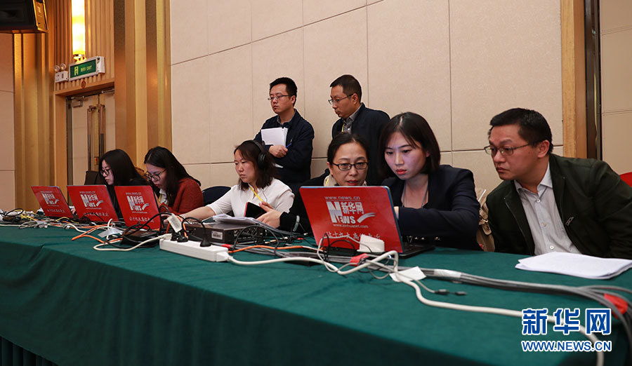 10月23日,十九大新聞中心舉辦記者招待會,邀請中央財經(jīng)領(lǐng)導(dǎo)小組辦公室副主任楊偉民,環(huán)境保護部黨組書記、部長李干杰介紹踐行綠色發(fā)展理念,建設(shè)美麗中國有關(guān)情況,并回答記者提問。圖為新華網(wǎng)現(xiàn)場直播。新華網(wǎng) 郝廣鵬攝
